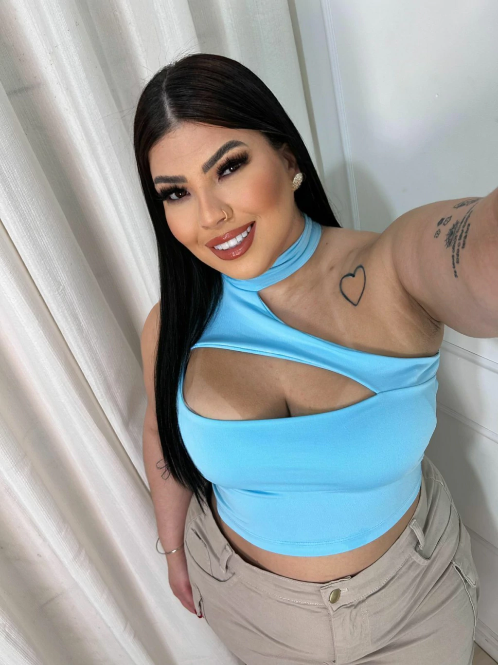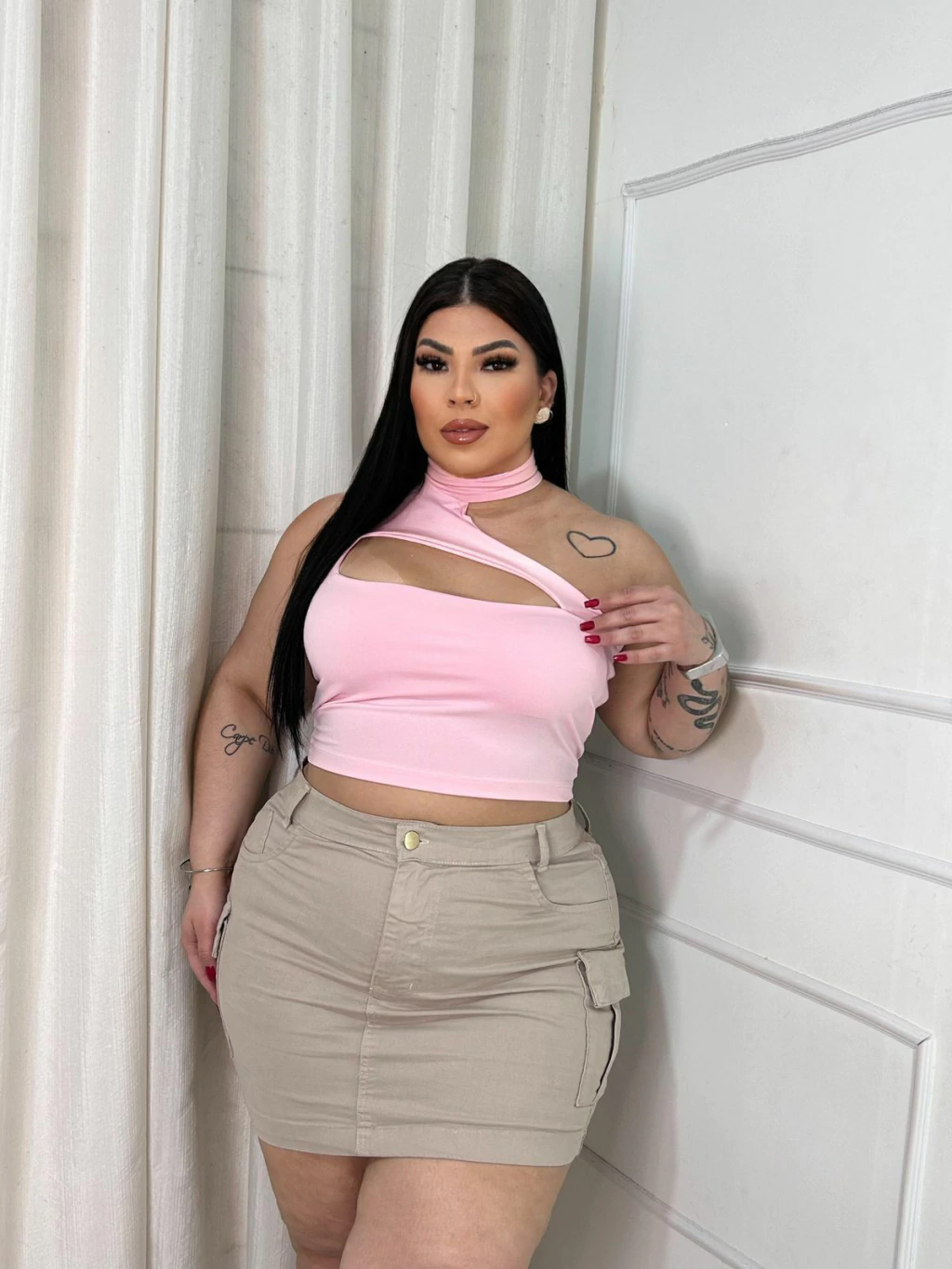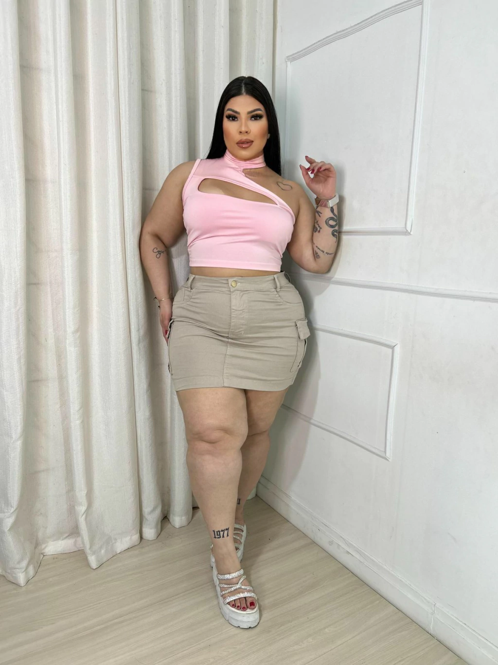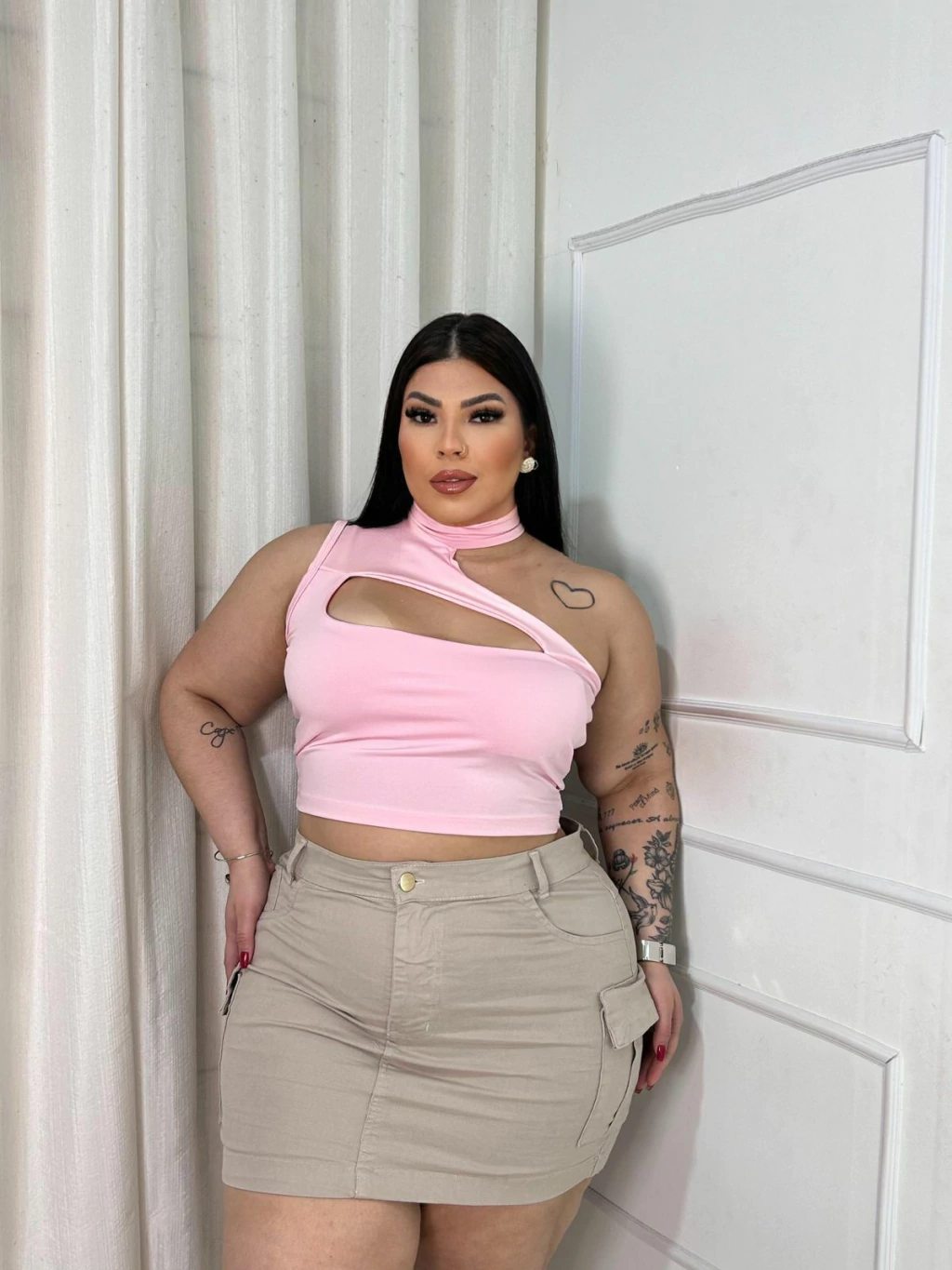 Um modelo moderno e cheio de atitude, perfeito para dias quentes. Possui recorte frontal estiloso e gola alta que valoriza o visual, deixando o look ainda mais sofisticado. Confeccionado em tecido suplex, oferece conforto, elasticidade e caimento impecável.